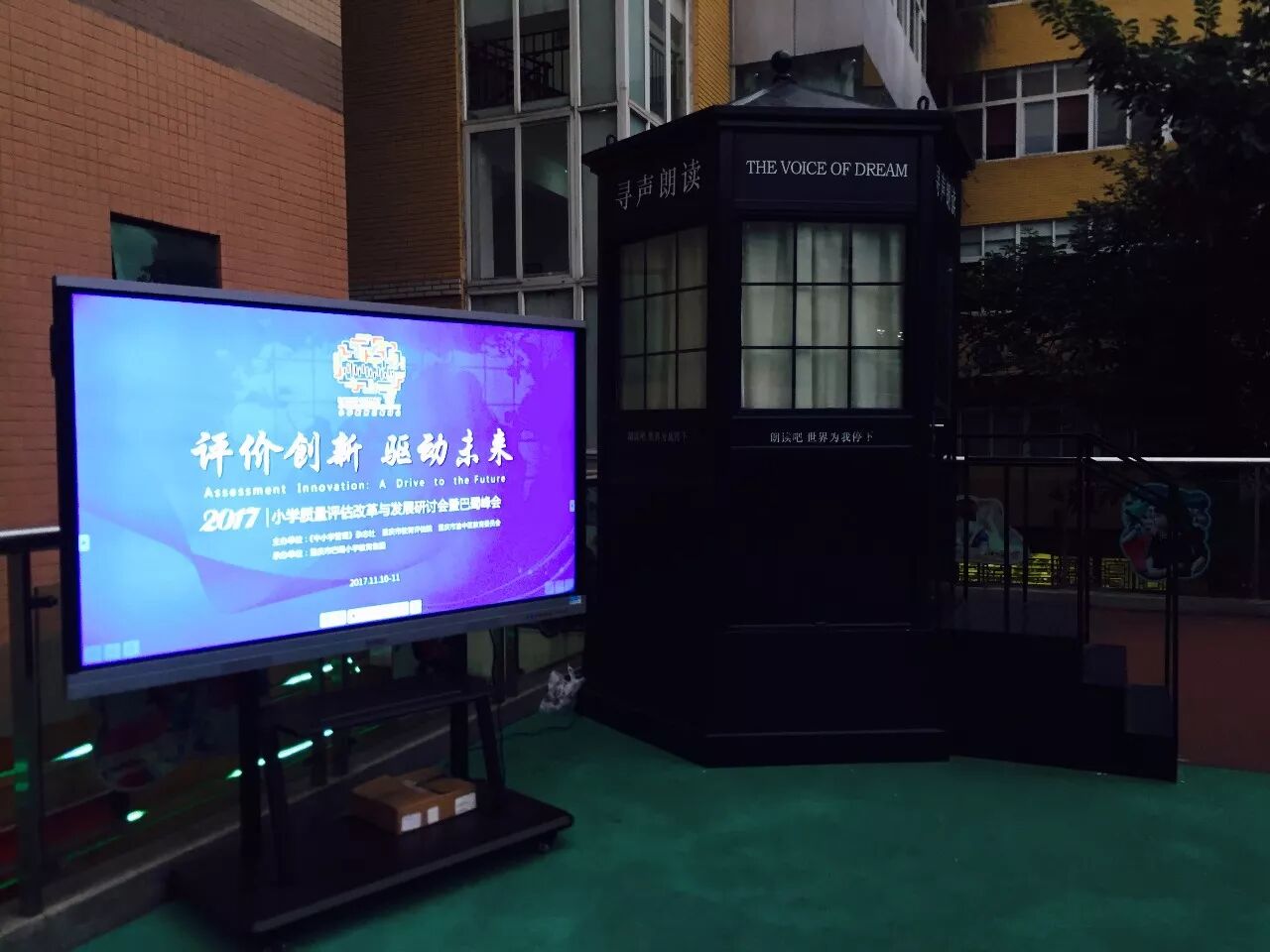 11月10日,2017“评价创新 驱动未来”小学质量评估改革与发展研讨会暨小学教育巴蜀峰会在重庆市巴蜀小学校召开,寻声朗读亭作为校园朗读文化的重要参与媒介在峰会亮相。